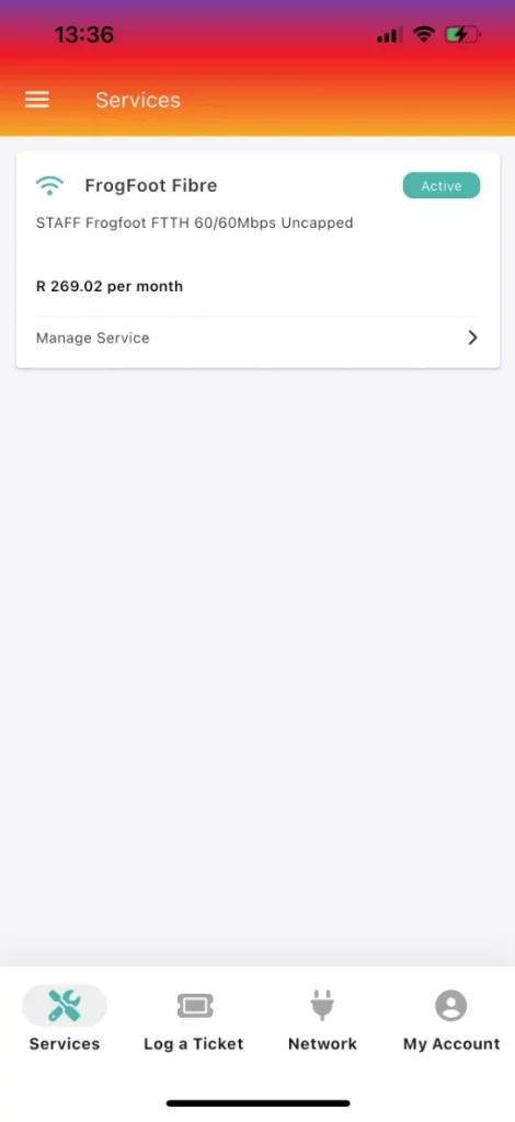 Find your fibre line under the Services tab and click on “Manage Service”.