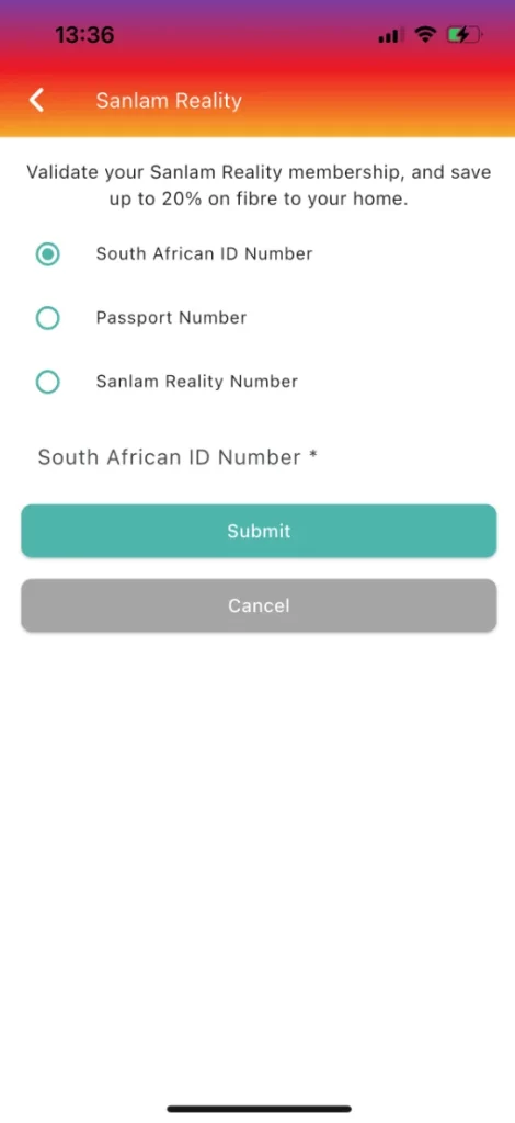 Enter your South African ID number or Passport Number associated with your Sanlam account, or enter your Sanlam Reality Number. Once entered click “Submit”.