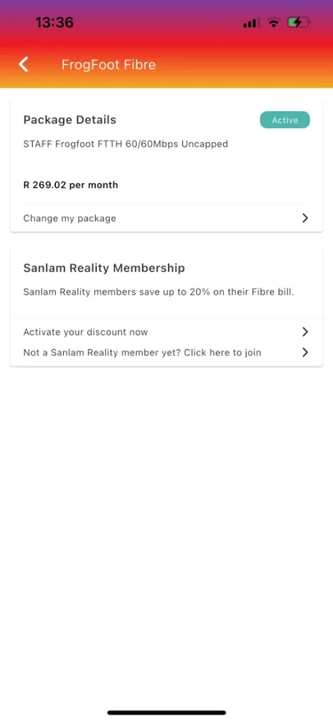 Depending on your Sanlam Reality membership type, you’ll get a different level of discount on your fibre to the home package: